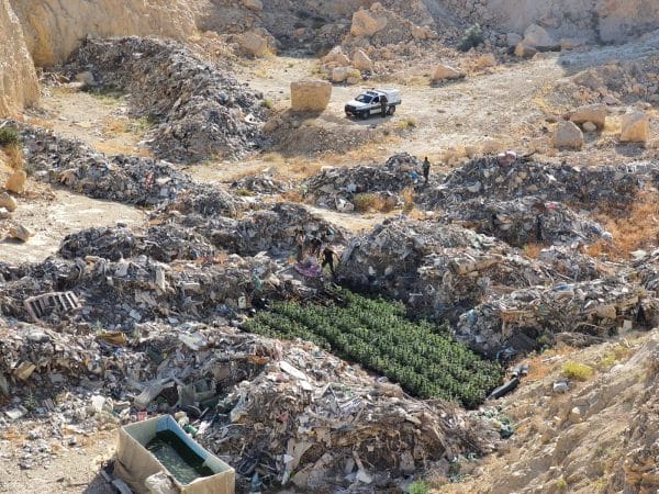 כמו כן, סמוך לישוב, בתוך מחצבה ישנה אשר הפכה למזבלה ענקית, אותר בין ערימות האשפה שדה גידול מרהיב של מאות שתילי קנאביס אשר הוסתרו מעוברי האורח אך נקלטו היטב בצילומי האויר שנערכים בשטח מפעם לפעם.