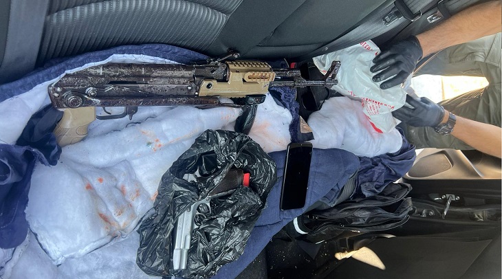 דקות ספורות לאחר שנסעו מהמקום נעצרו השלושה על ידי שוטרי מרחב שפלה ברחוב משה דיין. ברכב נמצאו רובה קלצ'ניקוב וכדורי תחמושת תואמים, כמו גם אקדח מסוג CZ.