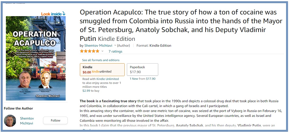 שם טוב מכתבי פרסם בחודש מאי אשתקד את הספר "מבצע אקפולקו", על הברחת מכולה עם טון קוקאין מקולומביה אשר נגנבה בנמל סנט פטרסבורג על ידי אנשי קג"ב לשעבר המקורבים לנשיא רוסיה ולדימיר פוטין.