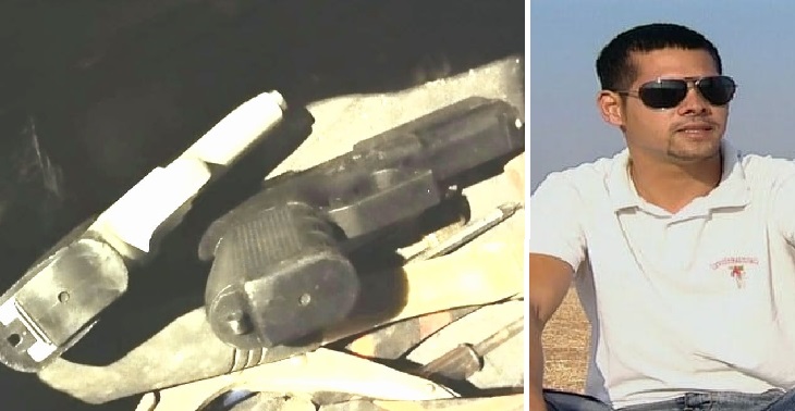 המשטרה מדווחת כי שוטרים הבחינו ברוכב קטנוע שעורר את חשדם בנהיגתו והוא נעצר לבדיקה שבמהלכה ניסה לברוח ואף תקף שוטרים עד שנעצר. לפי המשטרה, ברשות החשוד תפסו השוטרים שני אקדחי 9 מ"מ מוסלקים, כשהם טעונים במחסניות עם כדור בקנה ו"מוכנים לביצוע". כמו כן נתפסו שני בקבוקים עם חומר דליק וכלים החשודים ככלי פריצה.