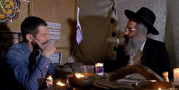חיים אתגר מראיין את הרב אלקריב (צילום מהתוכנית "אנשים")