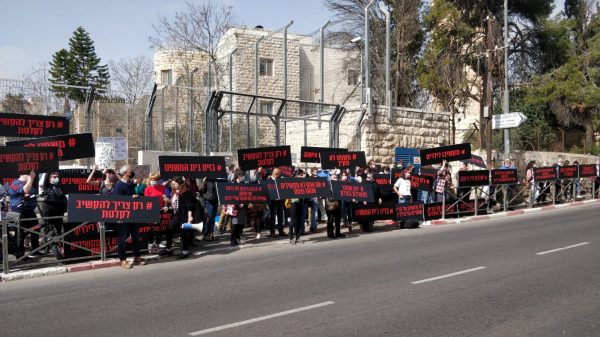 ההפגנה מול בית המשפט במהלך הקראת גזר הדין