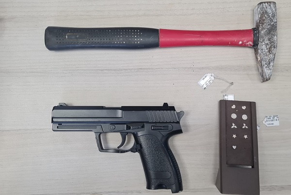 התשתית הראייתית נגד הנאשם מתבססת על עדות העובדת שגוללה את האירוע בפני החוקרים, עדויות ראייה, צילומי אבטחה ועוד. בחקירתו הודה הנאשם כי נכנס לחנות עם פטיש ואקדח, אך הכחיש שאיים על העובדת וטען גם שלא לקח דבר. לדבריו, הרקע למעשיו הינו חובות כבדים לשוק האפור ושימוש בסמים.