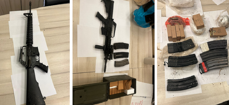 בין היתר נתפסו שלושה רובי M16, רובה סער G3, עשרות מחסניות וקליעים מסוגים שונים, וכן אביזרי נשק נוספים.