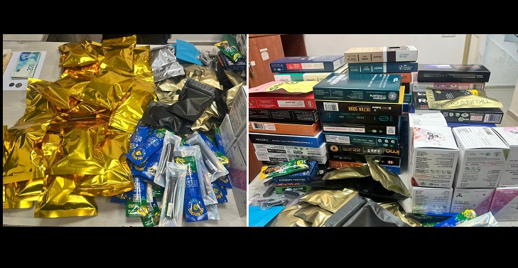 הסמים והכסף נתפסו בתוך קופסאות רבות ושקיות שונות.