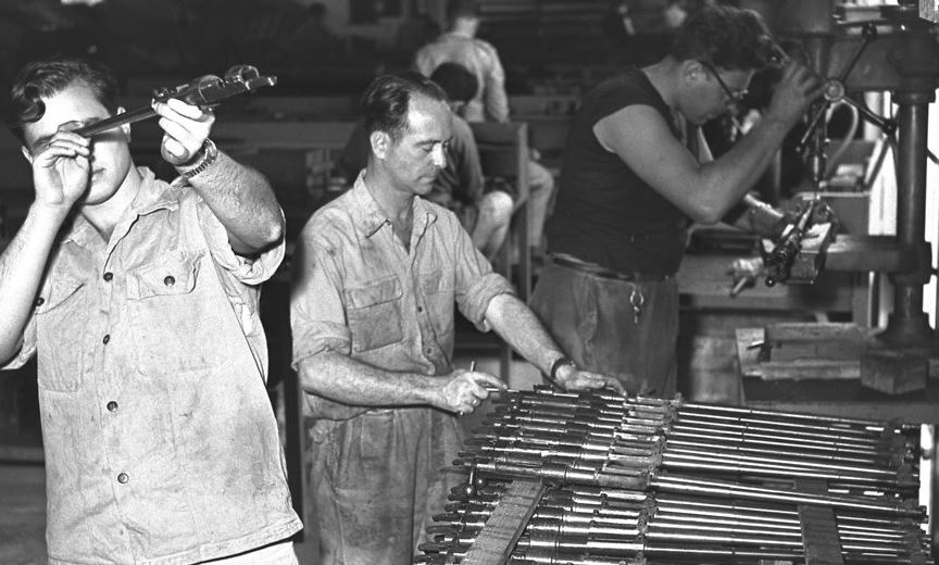 עובדים במפעל של תע"ש בשנות ה-50 (צילום: לע"מ)