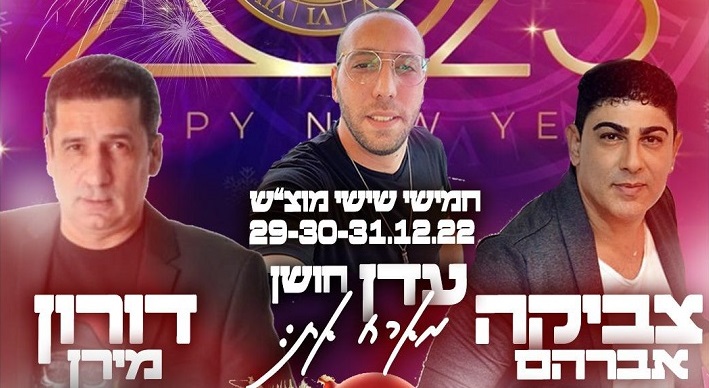 עדן חושן מארח את צביקה אברהם בחמישי, 29.12, ואת דורון מירן בשישי-שבת, 30-31.12. פתיחת דלתות: 22:30. מועדון לילות קסומים, דרך הים 7, אילת (מול מלון דן).