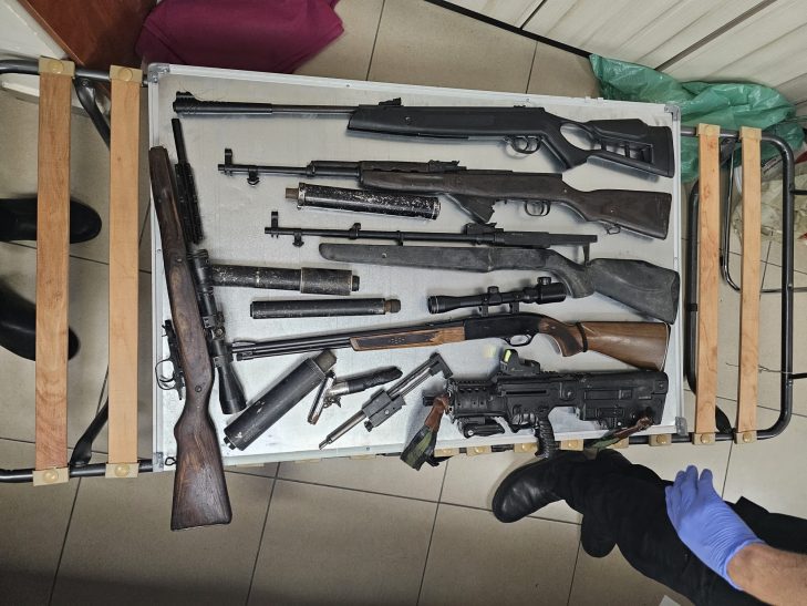 לפי המשטרה, בפשיטה שנערכה נתפסו 10 נשקים מסוגים שונים, שמונה רימונים צה"ליים, שמונה משתיקי קול, פצצות תאורה, עשרות פריטי אמל"ח ועשרות אלפי כדורי תחמושת.
