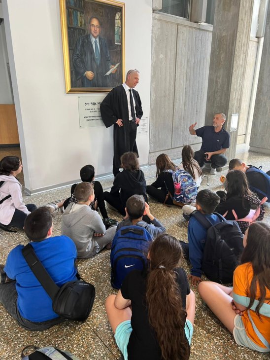 תלמידים מכיתה ז' באחד מבתי הספר היסודיים בתל אביב הגיעו לסיור בבית המשפט המחוזי בעיר, במסגרת שיעור "חוק, חוקה וממשל".