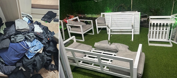 – גרימת נזק רב לחצרים ולטובין – שבירת דלתות ומשקופים, שבירת חפצים, שבירת מסכי טלוויזיה, הרס מכשירי חשמל ועוד.