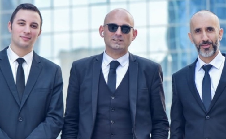 עו"ד יניב פרץ (במרכז) עם צוות משרדו: עו"ד לירון בטיטו והמתמחה עידן מור (גדי וילצ'רסקי בשם הבמה)