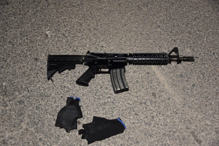 בשלב זה, טוענת המשטרה, אחד מהחשודים הרכובים על הקטנוע כיוון רובה M16 לעבר השוטרים, שביצעו לעברו ירי ופצעו אותו באורח בינוני.