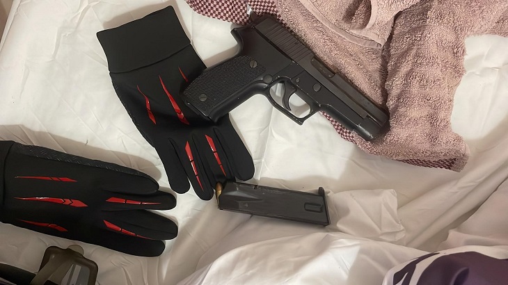 כמו כן, במהלך חיפוש בביתו של חשוד אחר שנעצר אמש ברמת גן, נתפס אקדח גנוב מסוג "זיג זאואר", ובמקום אותר כשהוא מסתתר גם שוהה בלתי חוקי (שב"ח).