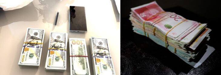 סכומי כסף שנתפסו במהלך המבצע (צילומים: משטרה)