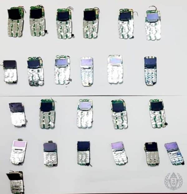 המכשירים הסלולריים שהחשוד ניסה להבריח לכלא (צילום: דוברות שב"ס)