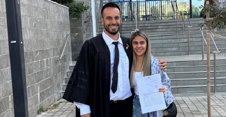 ירדן ציון וסנגורה, עו"ד תמיר אלטיט, לאחר הזיכוי, מחוץ לבית המשפט המחוזי (פוסטה)