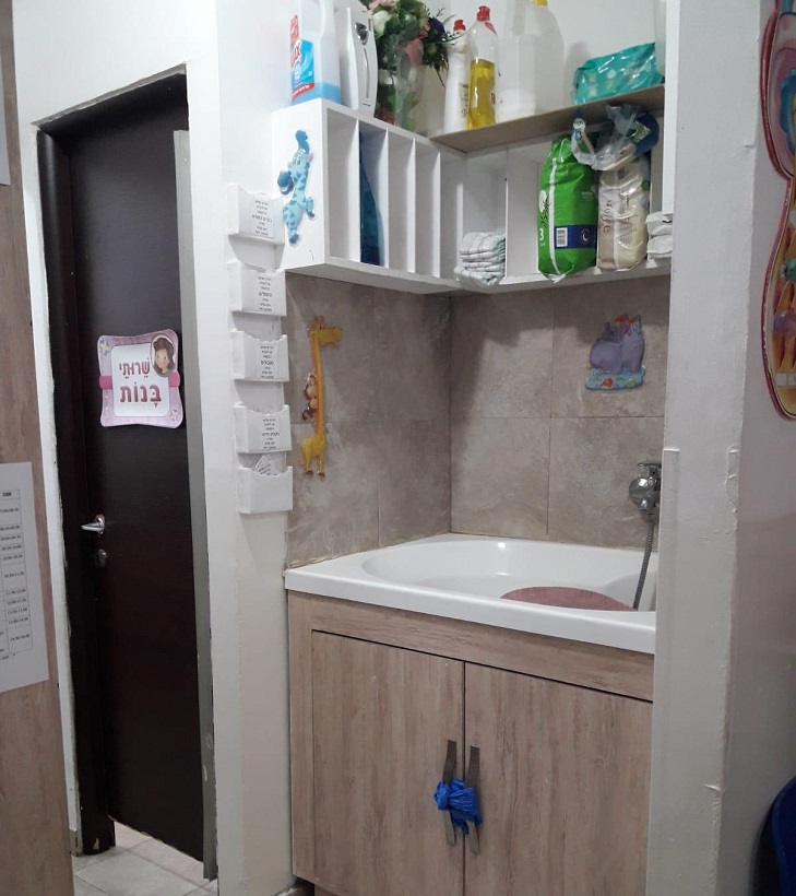 פינת כיור האמבט שאליו "הושלך" הפעוט צורח והושאר בו 23 דקות (תיק בית משפט)