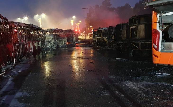 עם הגעת הצוותים הראשונים למקום אתרו לוחמי האש 18 אוטובוסים בוערים כליל במטען אש רב עוצמה.