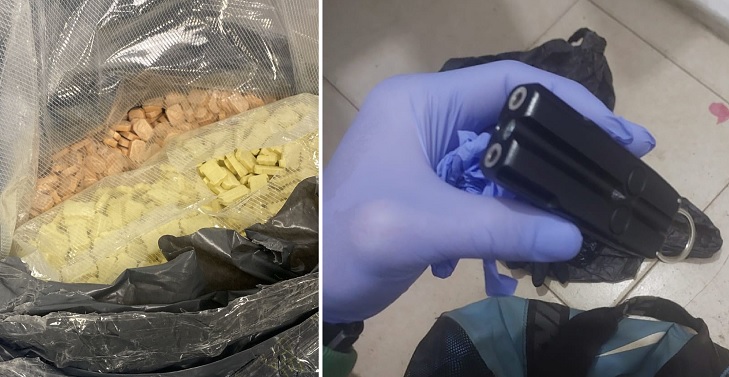 לטענת המשטרה, השניים החזיקו במחסן מסוים בתל אביב גם אקדח, וסמים מסוגים שונים:
