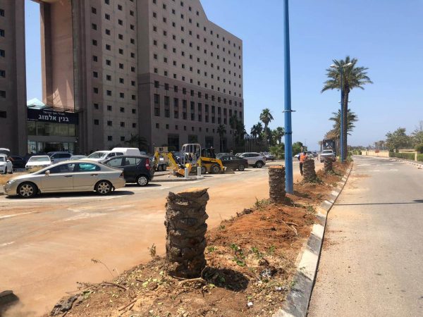 אחד הדיירים, החבר בוועד הבניין, שלח הודעה לסגן ראש העיר: "סליחה על השעה, היום הורידו דקלים מרשימים מול מרידיאן אלמוג. הדיירים זועמים ולא יודעים מה עושים שם ואיך מורידים עצים יפים כאלו בלי לראות תוכנית לשיפור. נשמח לעזרה".