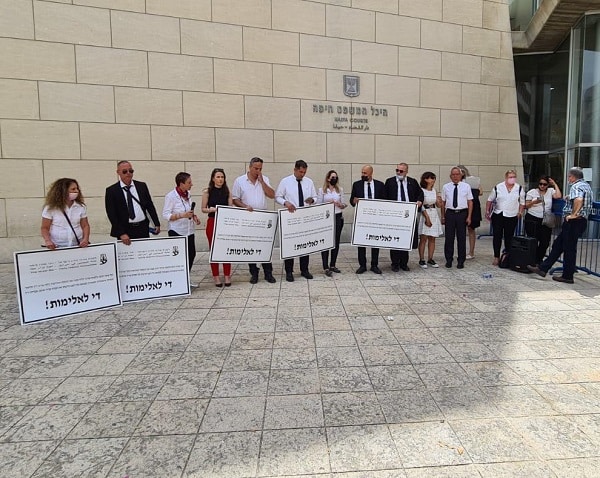 בתוך כך, יו"ר מחוז חיפה בלשכה, עו"ד תמי אולמן, ועו"ד שאדי סרוג'י ממשרדה, הובילו עצרת מחאה שקטה גם כן, בכניסה לבית המשפט בחיפה.