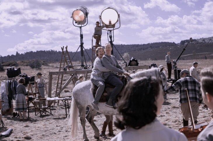 אלא ש"סודות בחצר האחורית" לא מתיימרת להציג ראיות המעידות אם השניים אשמים או חפים מפשע. במקום זה, העלילה מתמקדת במערכת היחסים בין בני הזוג. במאי הסדרה אד סינקליר (שהוא גם בעלה של אוליביה קולמן, הכוכבת) אימץ את אהבתם של הזוג לקולנוע ואת הטשטוש בין המציאות והפנטזיה שהמדיום מציע, ומלהטט בין סגנונות שונים. רגע אחד הסדרה מצולמת כהצגת תיאטרון, ורגע אחרי בני הזוג מככבים בהפקת מערבון בסגנון "בצהרי היום". במהלך החקירה הבלשית אפילו יוצאת לזירת הפשע שעל הבמה ועוברת מסט לסט כדי להנחות את השחקנים להראות לה כיצד ביצעו את הרצח.
