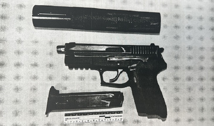האקדח, המחסנית והמשתיק-קול (צילום: תיק החקירה, משטרת ישראל)