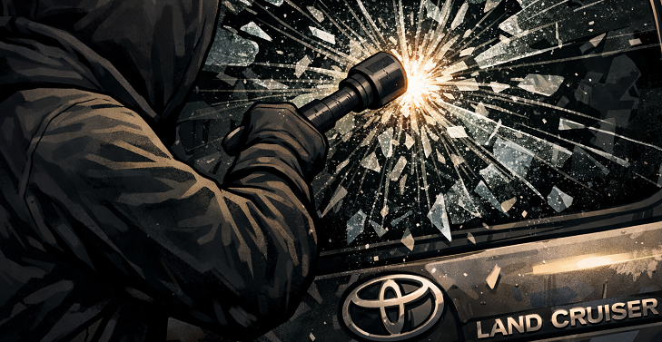 השניים ניגשו לרכב, ניפצו את החלון האחורי הימני שלו, פתחו את הדלת, נכנסו לתוכו והחלו לפרק את תא הכפפות.